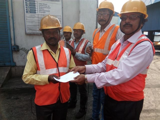 Best Safety award to Mr. Dileep Soren & by Ghato Branch Head for Best Safety Supervision-Mega Ghato West Bokaro Branch)