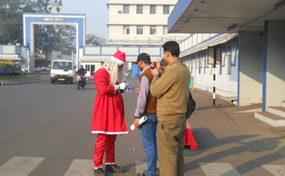 Another one of the several Initiatives for raising awareness regarding Health & Safety, Naresh Kumar & Co. Pvt. Ltd JSR, took an Initiative of “Safety Gift from Santa Clause “, where in volunteer from the branch, was dressed up as Santa and small tokens and handbills related to Safety were being distributed.