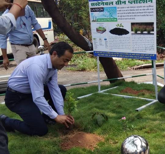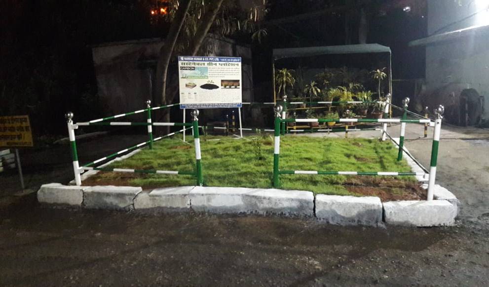 We have developed a small piece of abandoned land in front of our office area with greenery. We have used a special fertilizer called Bio Char and Seeds of a special variety grass called Switch Grass which Sequestrate the atmospheric CO2 and captures it inside the soil level and releases Oxygen back to atmosphere and converts the Carbon molecules into Fossils. This is linked to Sustainable CO2 reduction. (In pic RMM Area)